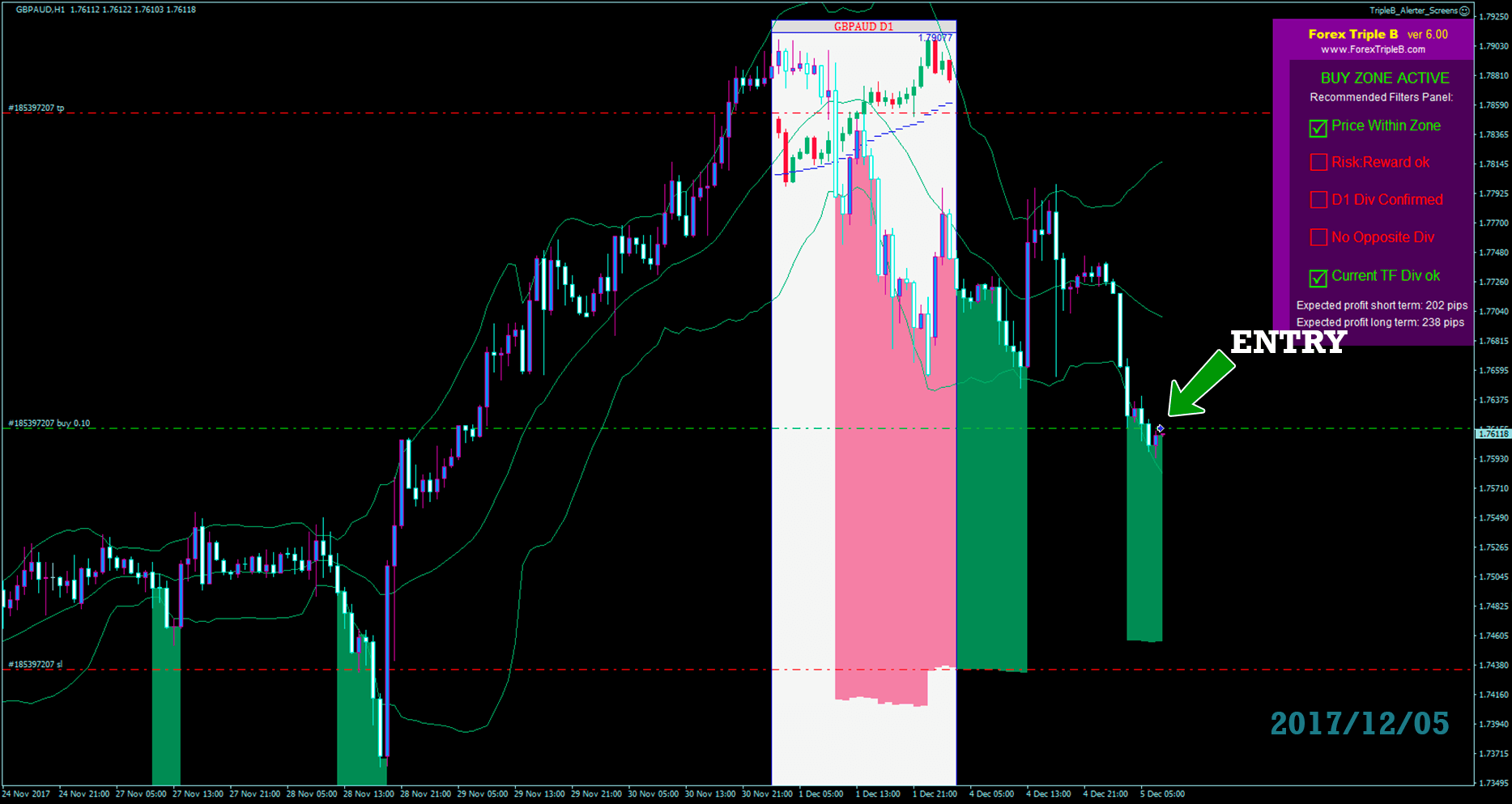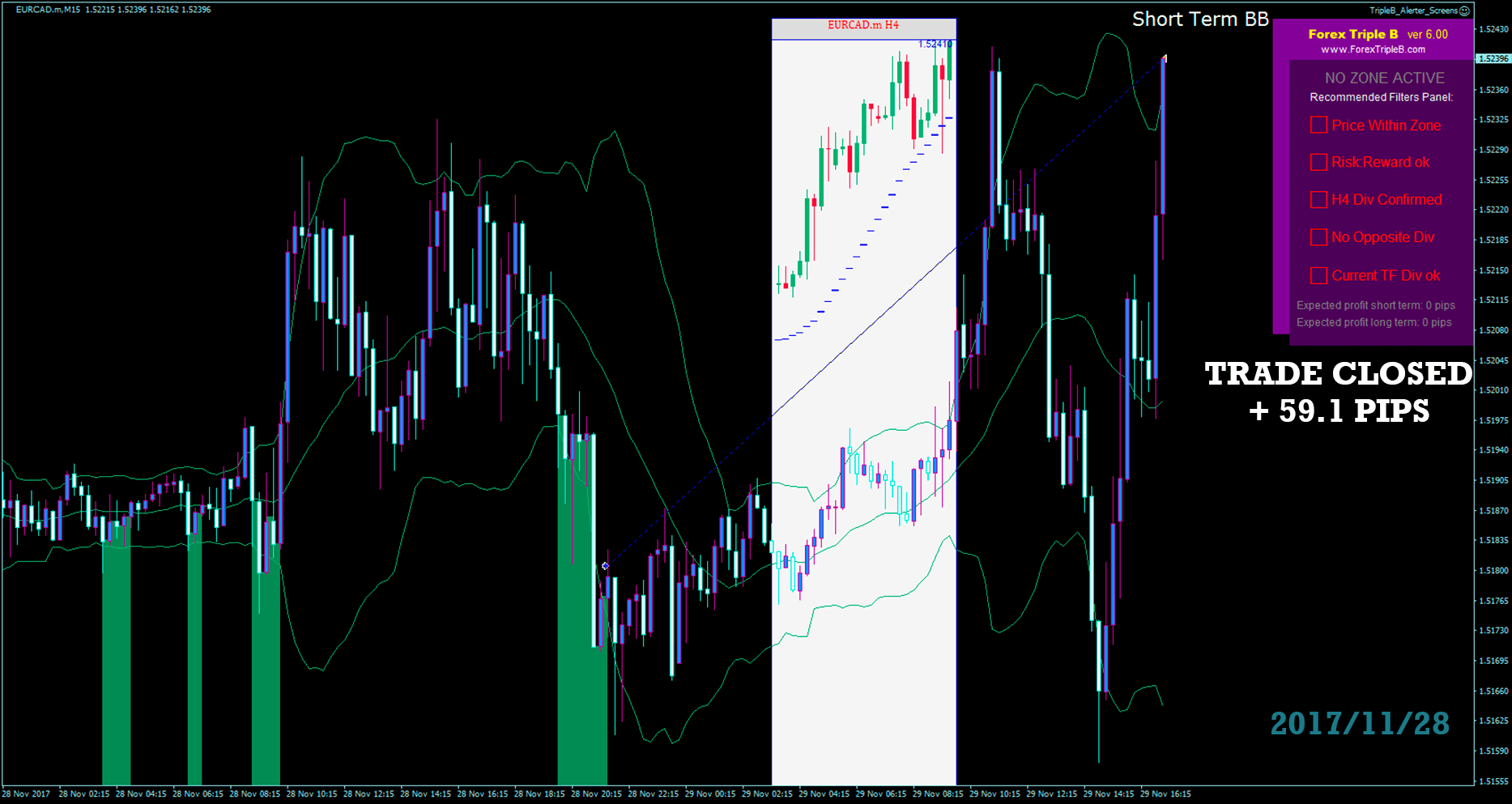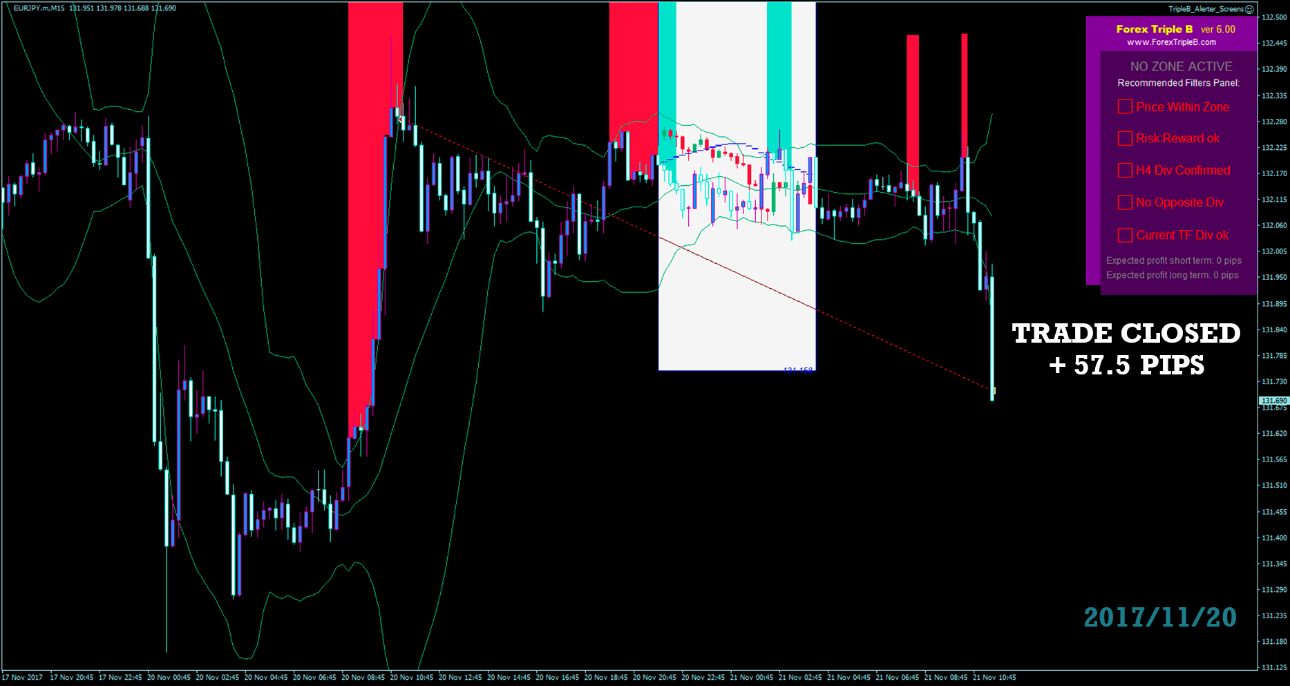 What you get in the Triple B PRO version is the latest and the best of our trading techniques. The Bollinger Bands “cloud” we’ve created will appear in pre-analyzed trending market conditions and will provide you with a “ready-to-trade” opportunities.